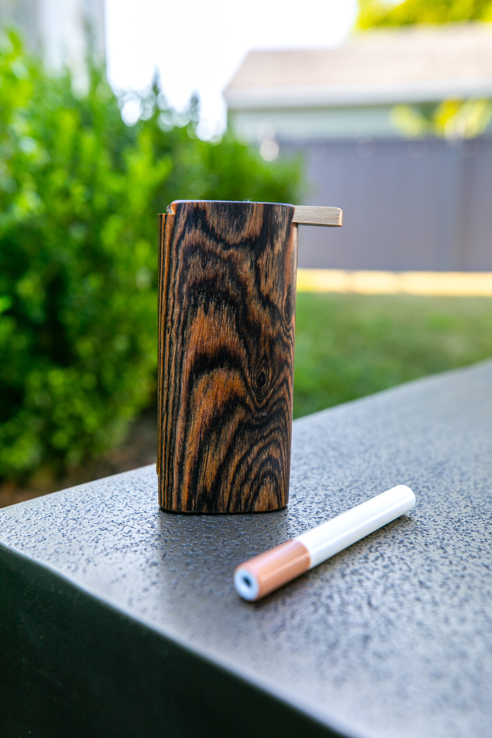 These LB Dugouts are pocket sized boxes that include a cigarette pipe and a storage compartment. All have a unique locking capability. The spring loaded cigarette releases the cap when you slide it down with your thumb.