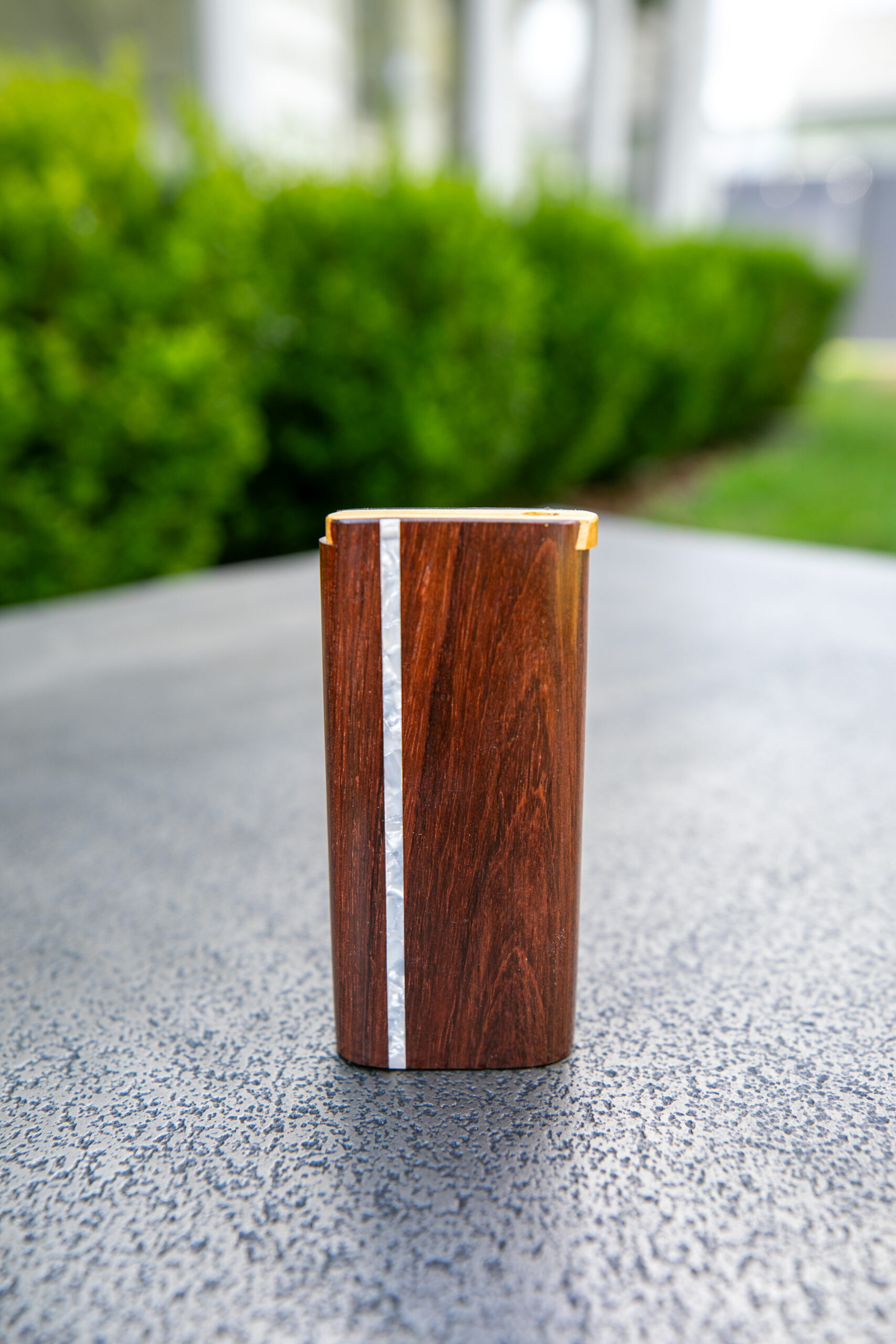 Large honduras wood dugout with pearl inlay and slider top. Large anodized cigarette smoker included.