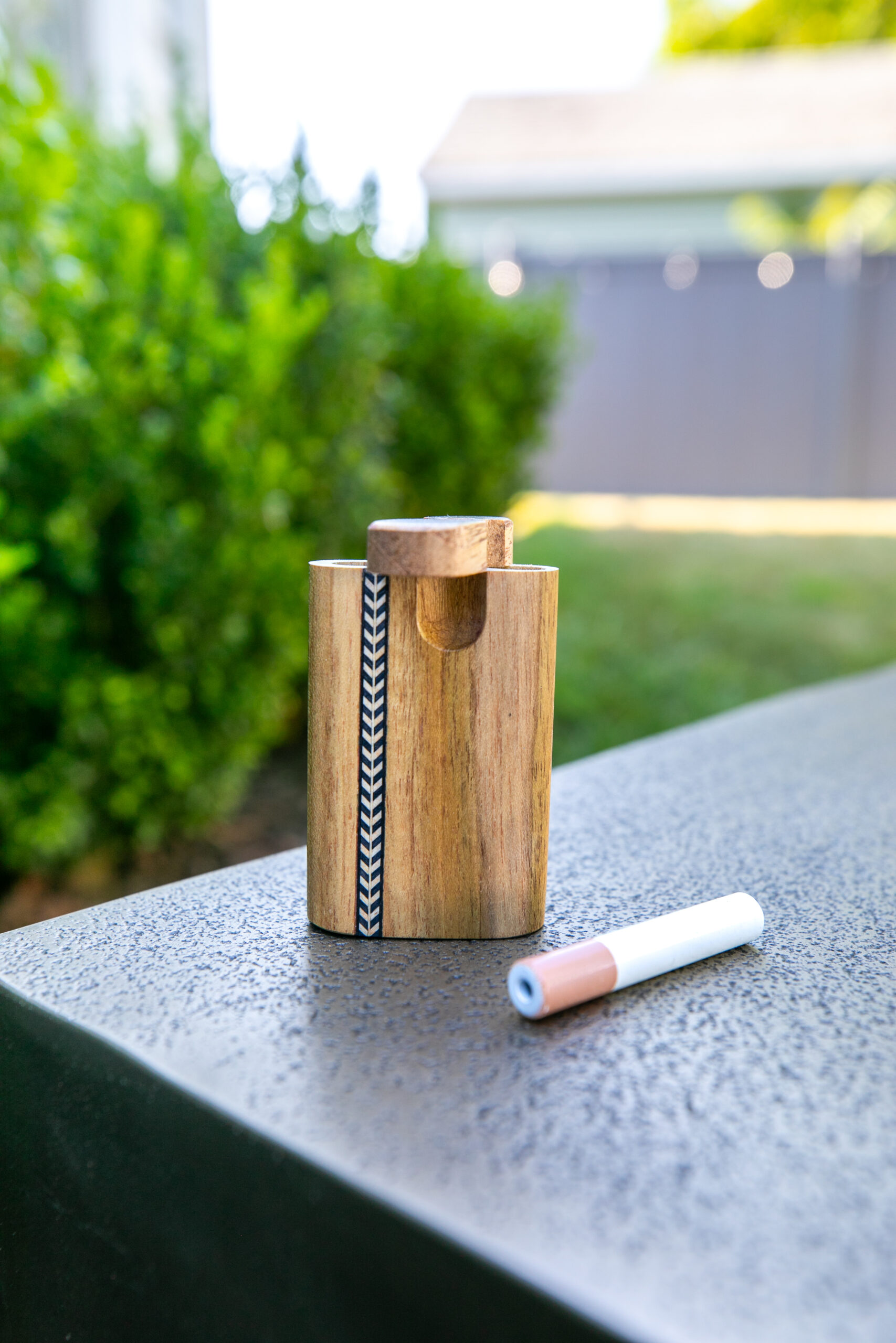 These pocket sized dugouts include a cigarette pipe and a storage compartment. Larges measure 3/4″x1 13/16″x4″; Smalls measure 3/4″x1 13/16″x3″.